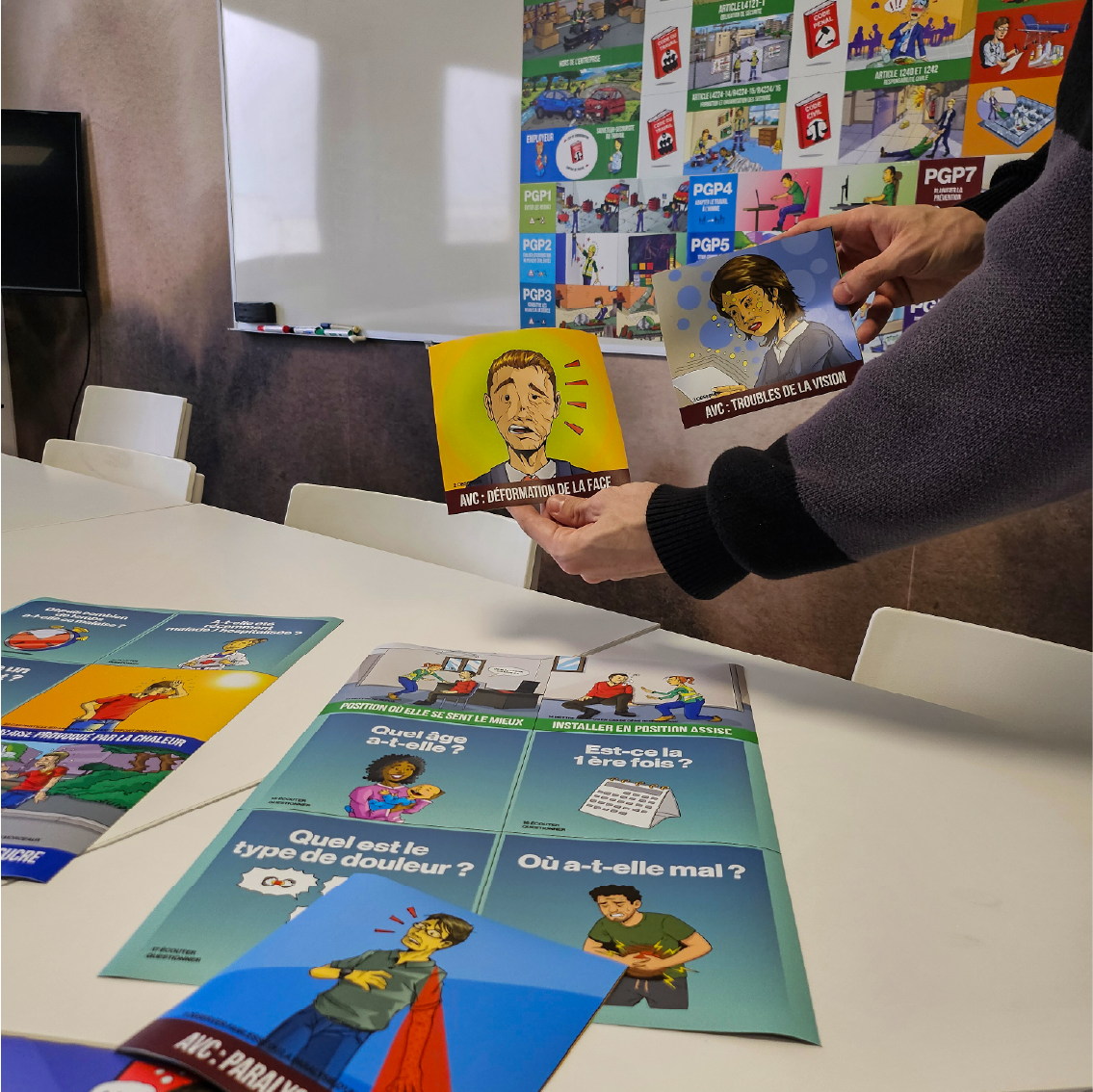 FORMAP© SST sur les malaises est un jeu interactif qui engage activement chaque stagiaire dans sa formation. Composé de plaques autocollantes à interconnecter, il dynamise la partie théorique en demandant aux stagiaires de décider pourquoi, quand et où placer chaque illustration. A l'issue de cet exercice, vous obtiendrez un logigramme des malaises.