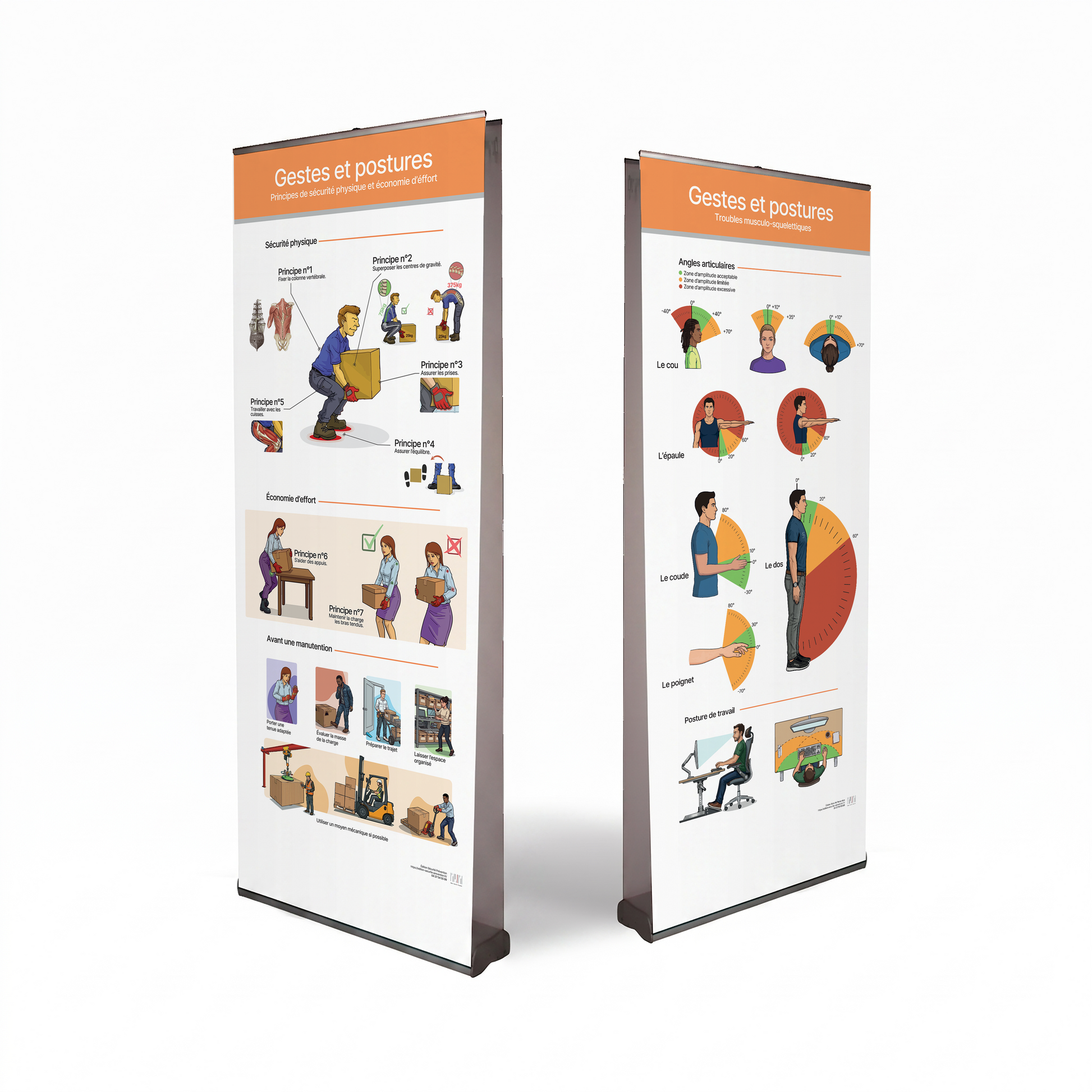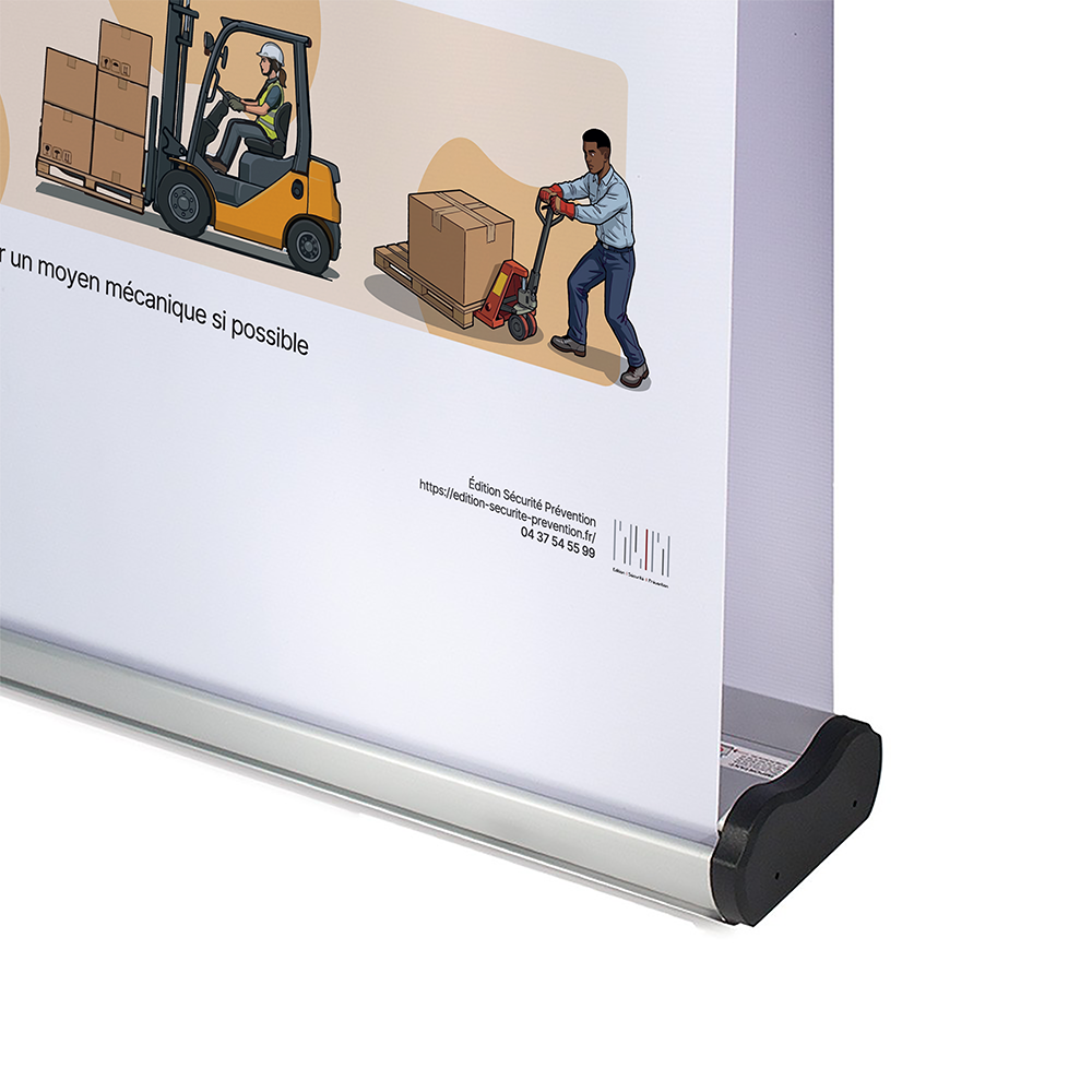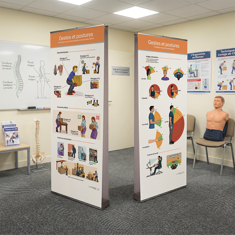 Optimisez vos sessions de prévention avec ce kakémono roll-up dédié à la formation "Gestes et Postures". Spécialement conçu pour les formateurs (SST, PRAP) et les entreprises soucieuses de protéger la santé de leurs collaborateurs, ce support pédagogique visuel est l'outil idéal pour sensibiliser efficacement aux bonnes pratiques de manutention.